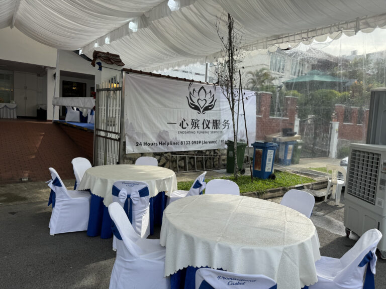 In this gallery, you’ll see examples of Free Thinker funeral setups in Singapore — from simple, elegant wake spaces at HDB void decks to customised arrangements at funeral parlours. Each image captures the clean, respectful environment we create, featuring personalised photo displays, floral tributes, and memorial tables that help family and friends celebrate a life without the framework of ritual or religion.